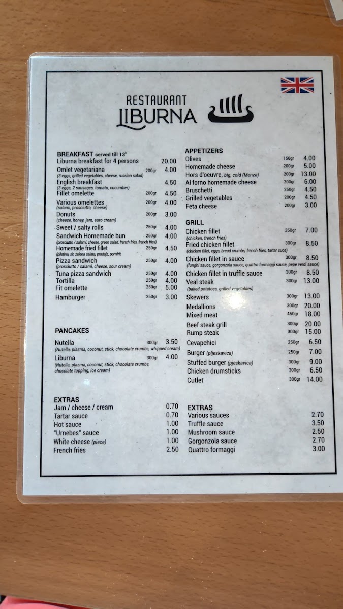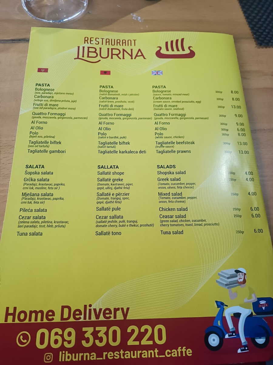 Introducing the menu of Cafe & Restaurant LIBURNA, a gem located in the heart of Ulcinj, Montenegro. This charming eatery promises an unforgettable dining experience with its diverse and delectable offerings. Patrons rave about the seafood risotto and the generous portions of Cevapcici, paired with delightful sides, sauces, and warm garlic focaccia. The kids were equally pleased with their Bolognese pasta, showing the restaurant's ability to cater to all ages.
